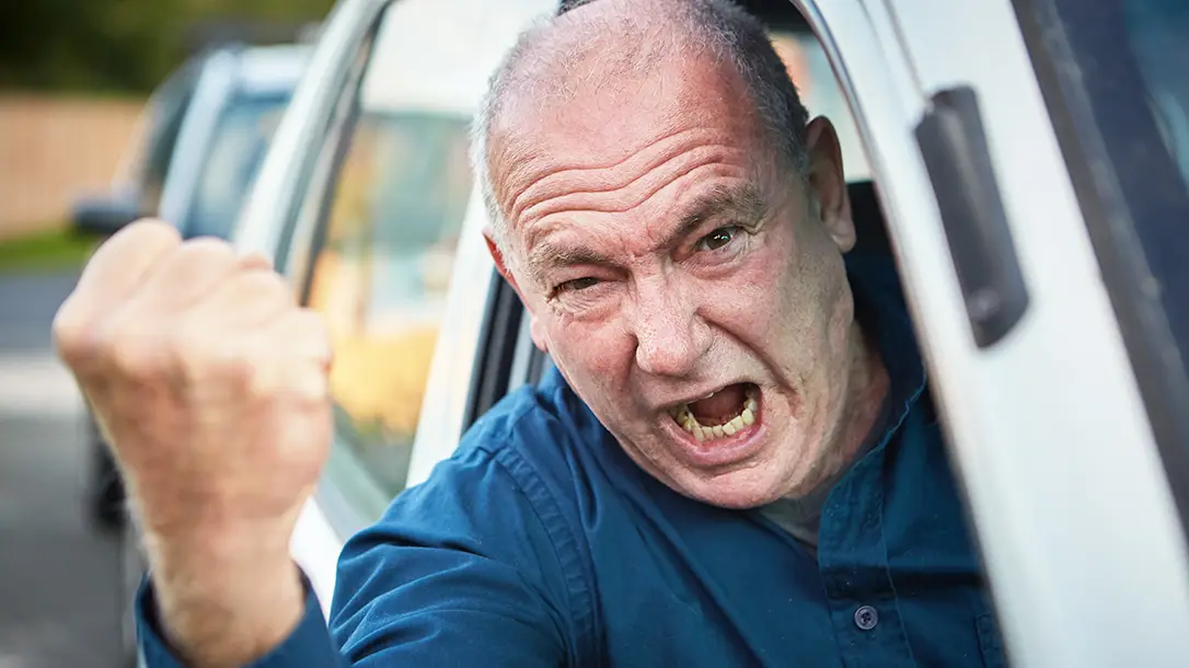 You are pulling into the local mega-mart and grab a parking spot up front. As you exit your car, however, you are confronted by a man screaming at you. He claims you “stole” his parking spot, and his anger is evident. He is showing all of the physical signs of being potentially violent. His fists are clenched, his motions are exaggerated, and his face is flushed. You quickly survey your surroundings for any law enforcement and to gauge your position. You make a quick mental inventory of your EDC gear, and your gun is at the top of the list.