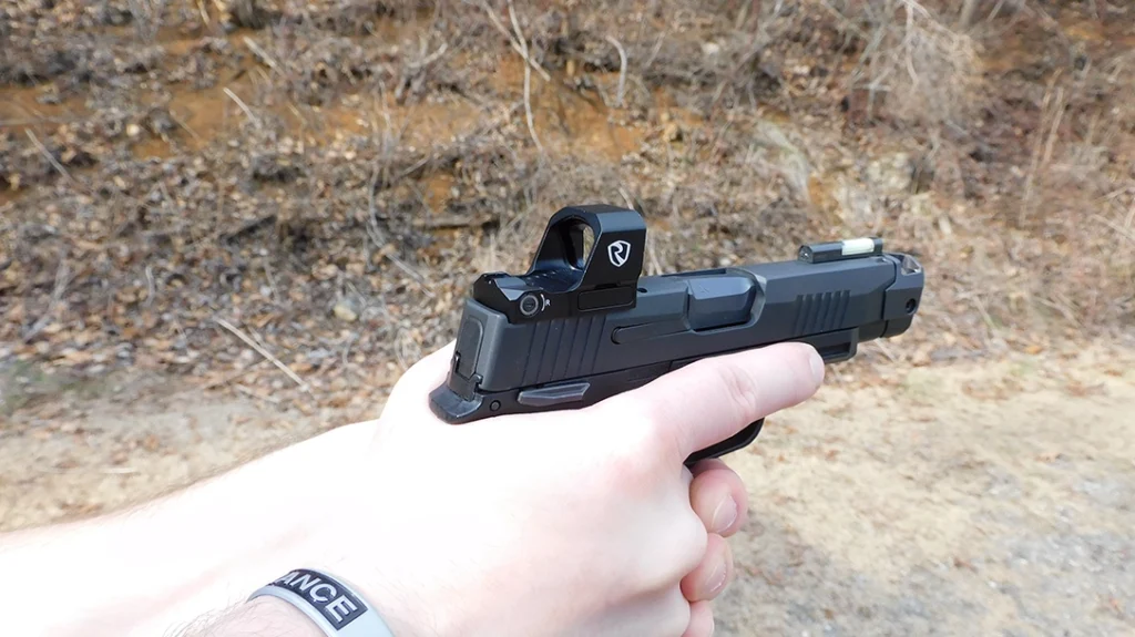 The Riton multi-reticle is my current favorite handgun optic reticle and has been since I first ran it a year ago. I prefer the dot-within-the-ring setting, but it’s nice to have a choice. That the MPRD XL’s reticle is green makes it even better. I’ve always preferred green reticles, but I usually don’t have a choice. I like that the MPRD XL is green by default.