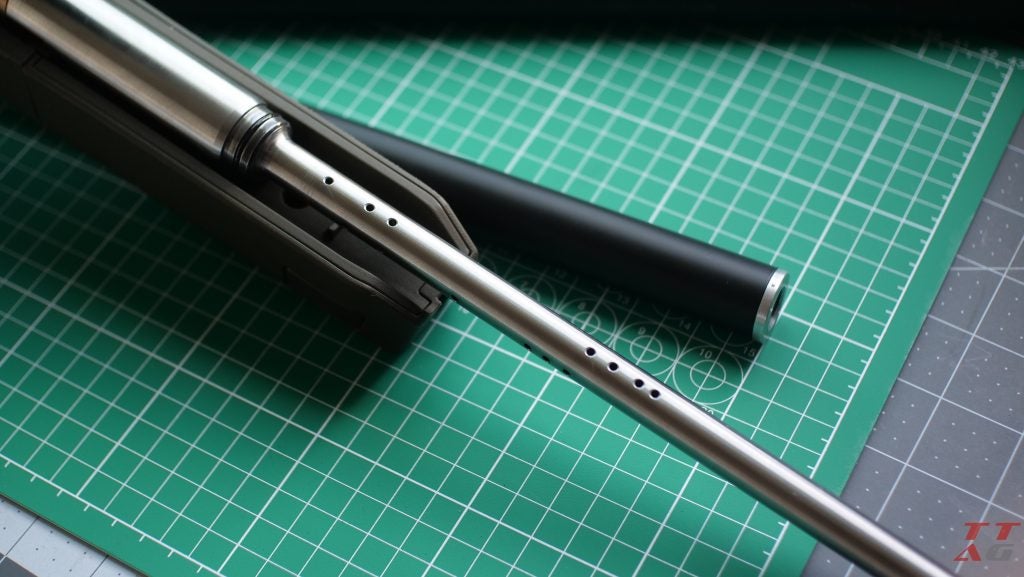 Integrally suppressed barrels offer several performance advantages over threaded suppressors. The permanent integration eliminates the point-of-impact shift that occurs when mounting or removing a detachable suppressor, since the suppression system is always in the same position relative to the barrel and doesn’t add any extra weight to the system or mess with the barrel’s harmonics. This consistency should improve accuracy while running a suppressed system.