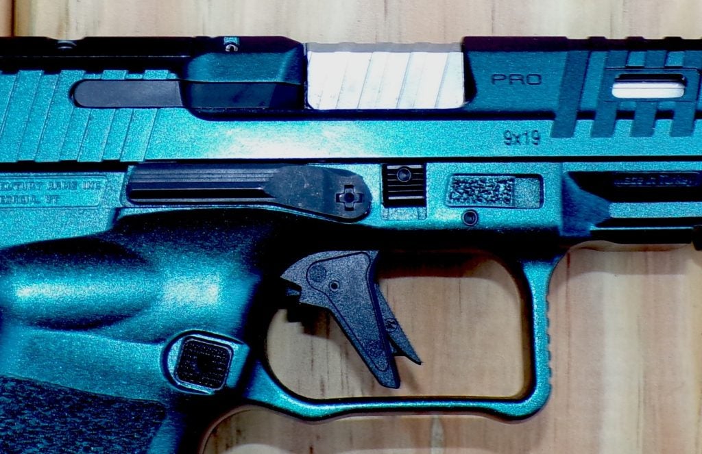 Speaking of that trigger, I can’t say enough good things about it. It had, maybe, a quarter-inch of take-up. When you hit the wall, it broke at a measured 3 pounds, 10 ounces average. The trigger reset occurred when it had moved about ⅛”  forward. I have reviewed dozens of pistols over many years, and it is extremely rare to find one with such properties. Talk about a great trigger for a competition gun!
