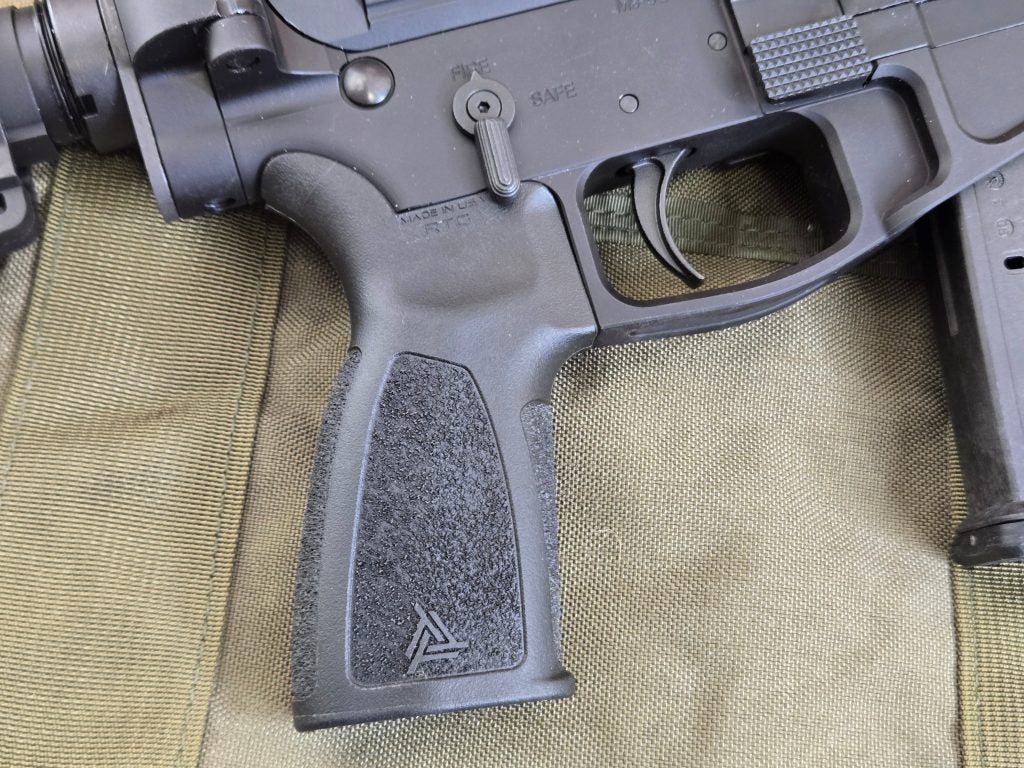 As far as my support hand goes, I’d typically grip it just ahead of the mag well. There isn’t a lot of space with it’s 4 inch handguard, but it is just enough. My thumb tends to settle into the front MLOK groove on the left side of the rail. The blade of my hand rests along the angled magazine well. I can easily apply rearward pressure for added stability that way. I’m tempted to try an A3 Tactical +10 Modular Foregrip, which makes it 100 degrees, so not vertical. That should be okay, but it’d be nice if we could just repeal the NFA and not worry about it.