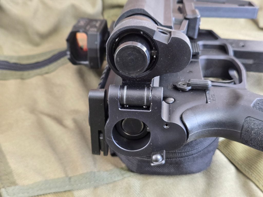 The forward charging handle is neat, but I have literally decades of M16 and AR use so that took some getting used to for me. I did use it when I thought about it, but found myself just using the traditional rear mounted charging handle much of the time. Which is okay with the dual charge system. One thing the forward charging handle is really nice for though is for press checking the AR to check your chamber status. It’s way easier to do that with the forward charging handle than the rear mounted one.