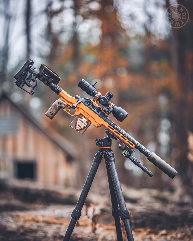 Multi-cal rifle cans from Silencer Shop are your go-to workhorse. Modular lengths from 6-9 inches, weighing 9-13 ounces, can pull about 32+ in dB reduction when paird with the right subs. While going with an overbored suppressor in the .45 caliber category is fine, you won’t get optimal results, so something like the HUXWRX 7.62 Ti would be a great option for a general-purpose .300 blackout rig.