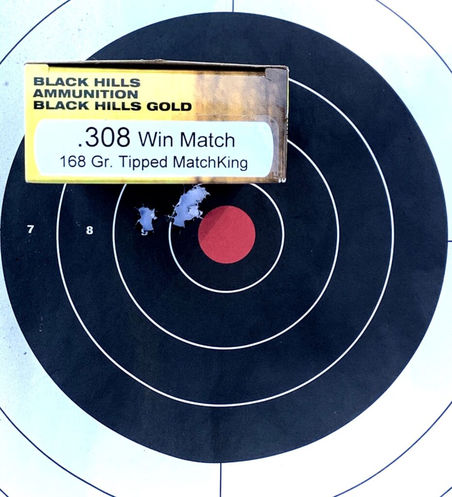 I am blessed to be provided ammo by Black Hills, so I broke out a couple of .308 Win Match loads they’d sent. They were the Black Hills Gold 168-grain Tipped Match King and the red-boxed 168-grain Boat-Tail Hollow Point.