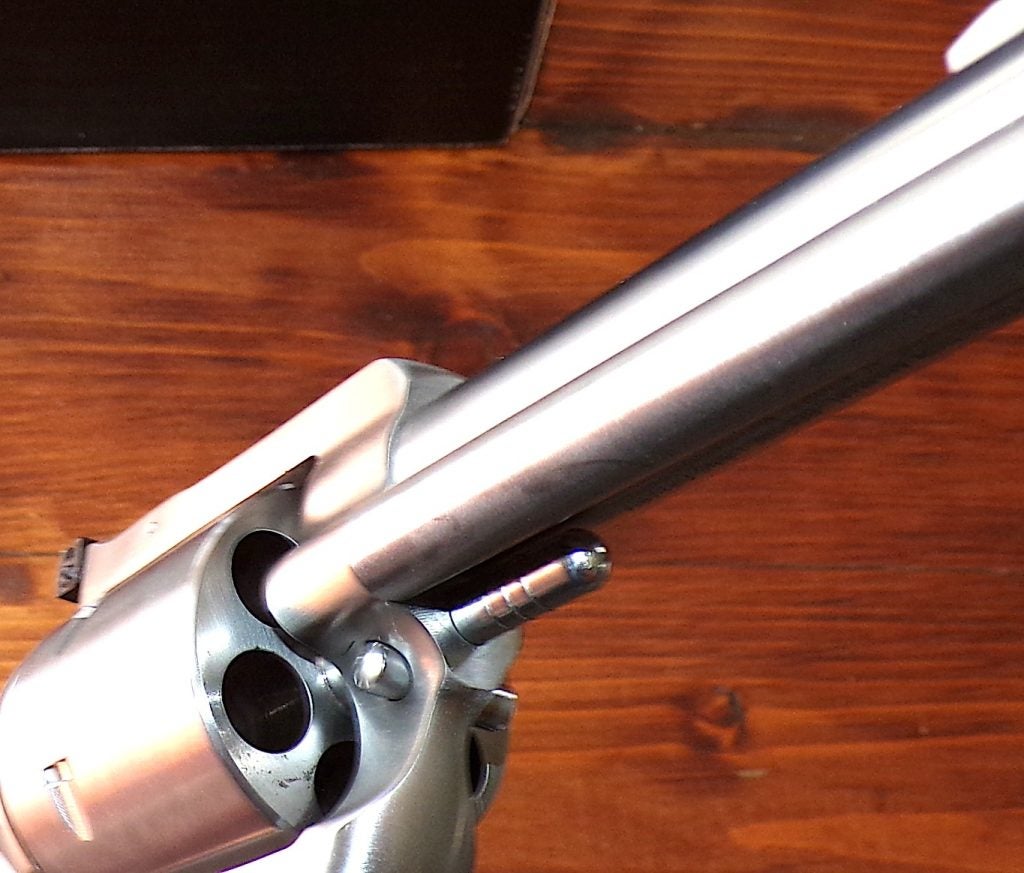 I was perusing Ruger’s site a while back and stumbled across the SB… I thought, “Why not?” and ordered one to review. I got the shorter-barreled version, the under-five-incher, in stainless. I’ve always wanted to try that short barrel. Both my earlier Rugers had 7.5-inch barrels. I have since owned another .45 Blackhawk with the 5.5-inch tube, but I prefer the shorter version.