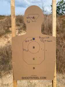 Dot Torture is one of my go to evaluation tools for new handguns. Even with barely there sights and a questionable trigger, the LCP pulled off a 50/50.