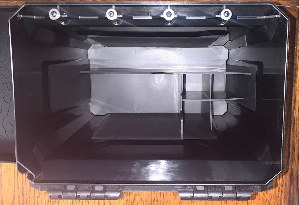 Below, with the tray in place. There is a generous handle (top) that allows quick removal of the tray.