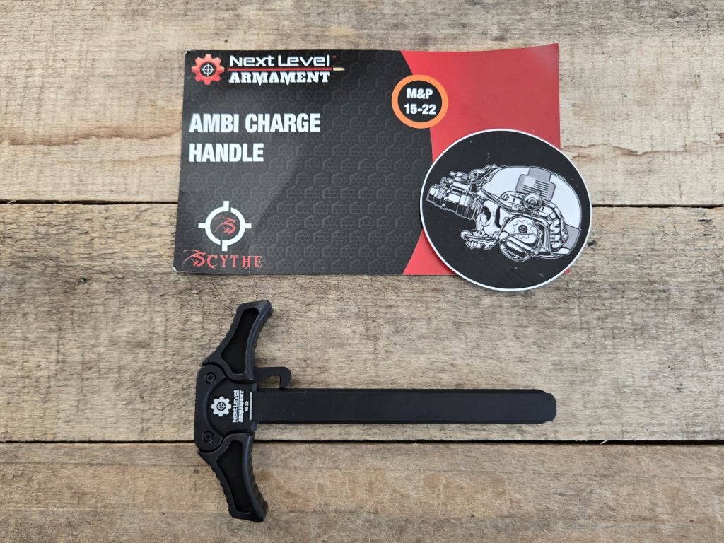 The Next Level Arms ambi charging handle is nice. I don’t actually have one of their charging handles on my 5.56, but after using this one on the M&P I plan on getting one. I’m probably doing that in the reverse order as most folks, but that’s okay. Honestly, even if the only AR you run is 15-22 this is a darn nice charging handle to have on it.